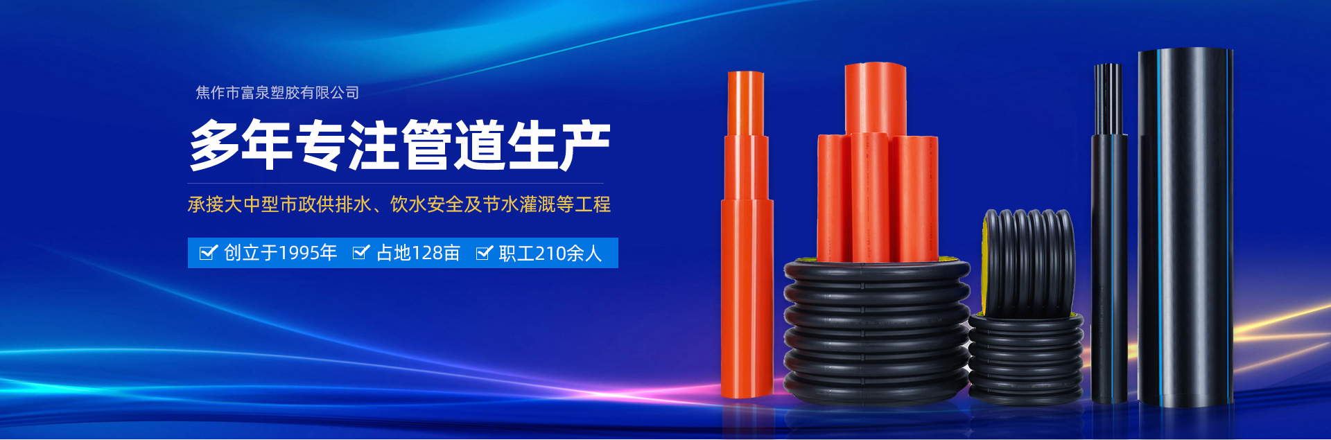 - 焦作市富泉塑膠有限公司,創立于1995年,是一家集研發、設計、生產、銷售為一體的大型管材企業。公司位于太極故里、黃河之濱一一河南焦作溫縣。公司占地128畝,現有職工210余人,其中具有中技術職稱的19人。生產、檢驗設備58臺(套),包括PVC實壁管生產線11套、PE實壁管生產線12套、HDPE雙壁波紋管生產線6套、PVC雙壁波紋管生產線5套,檢驗設備14臺(套)。主要產品有:Φ20mm-630mm、各種壓力規格的PVCU、PVC-M、PE給水管材,PVC-U節水灌溉管材,HDPE燃氣和礦用管材,DN200-800mm的HDPE、PVC雙壁波紋管及各種噴灌、滴灌工程材料。承接大中型市政供排水、飲水安全及節水灌溉等工程。 富泉塑膠公司重視產品的質量、安全、環保和節能,在同行業中率先完成了“新華節水產品認證”,全方面通過OHSAS18001職業健康安全管理體系的一體化導入,并建立起規范的現代企業管理體系。公司以“質量”為先導,采用質量跟蹤、多環節把關的方法,組建具有行業水準的企業技術檢測中心,常年委托水利部節水灌溉設備檢測中心、河南省產品質量監督檢驗院對產品跟蹤檢測,并由中國人民保險公司承保產品質量。公司連續多年被河南省水利廳確定為“安全飲水設備、節水灌溉設備”定點生產企業,并獲得“中國名優產品”“質量、服務、信譽AAA企業”“河南省**產品”“河南省水利企業”“河南省守合同、重信用企業”等榮譽稱號?! 「蝗苣z公司堅持“用戶為上”的服務理念,長期以來,全方面關注客戶價值,不斷提升服務水平。服務隊伍常年為客戶的產品設計、施工、安裝提供合理的方案和全程細致、周到、**、快捷的技術服務。公司自成立以來,一直堅持以人為本的宗旨,塑造企業形象,并致力于新產品的開發,憑借雄厚的技術開發能力,先進的工藝制造流程,嚴格的質量管理保證體系,優良的售后服務網絡,已成為河南省大的飲水、灌溉及排水管材設備制造商。產品暢銷全國,而且還以公司雄厚的綜合實力在業界中占據著重要的地位。